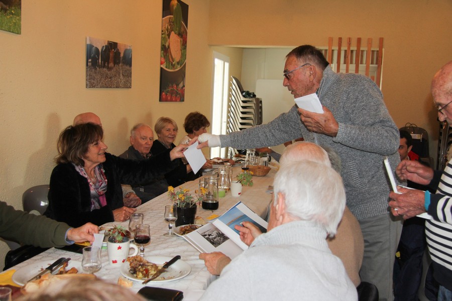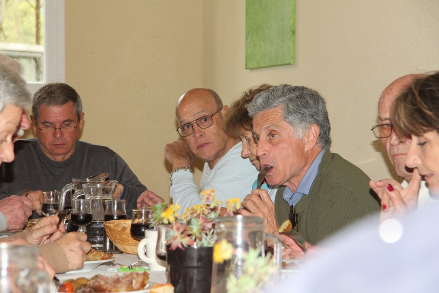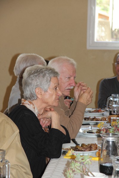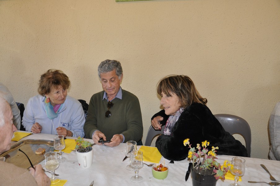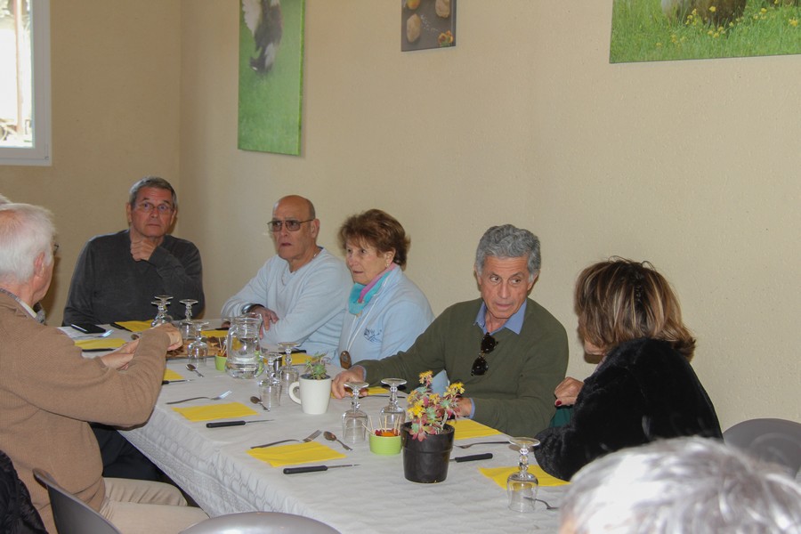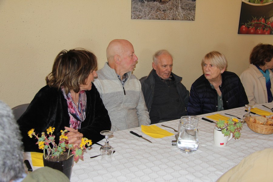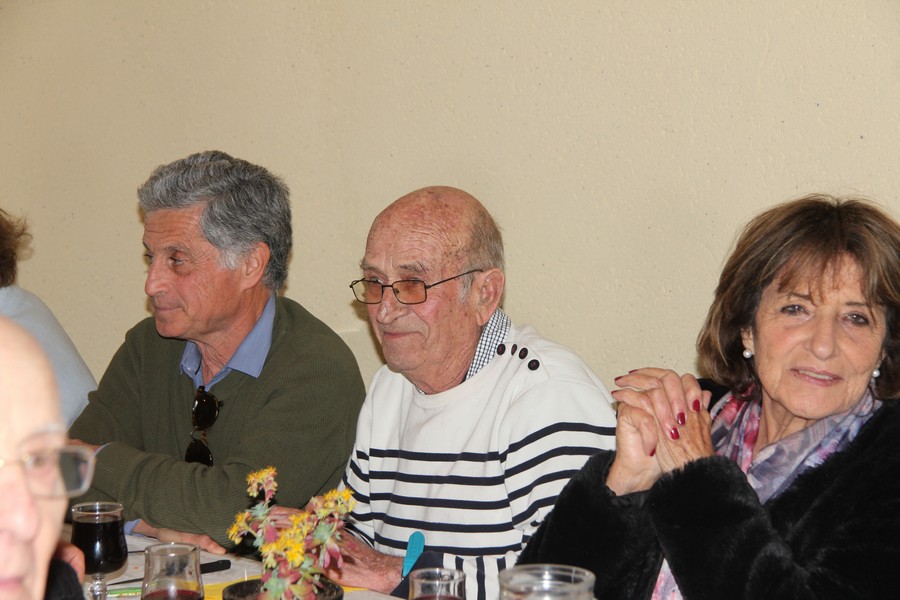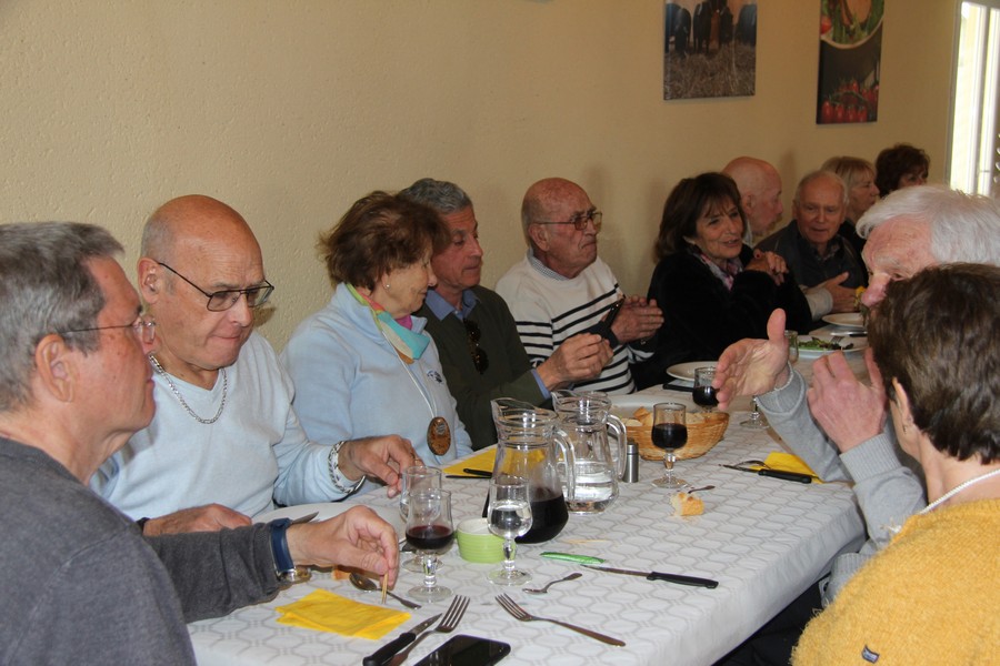 Présents au repas Daniel ALESSI, Claude et Danielle ARQUERO, André et Lucie BERNAT, René BOUSCATIER, Alain et Marie-Claude CHEVASSUT, Robert FICINI, Odile FICINI, Jean-Baptiste FICINI, Jean-Pierre et Claudia GUILABERT, Bernard et Martine HOUZÉ, Paulette JULIEN, Christian et Katherine MARTINEZ, Claude et Andrée METAIREAU, Gérard et Elisabeth PLAZA, Chantal RIZZO, Alain et Isabelle ROUSSEL, Jean-Pierre SAINT-MARC, Marc et Odile SELLIER, Jean-Marie WOLFF. |