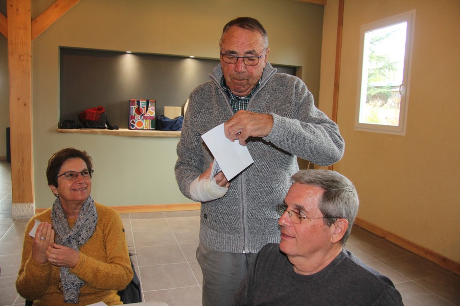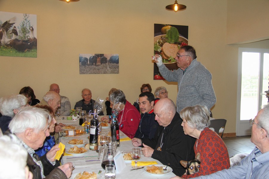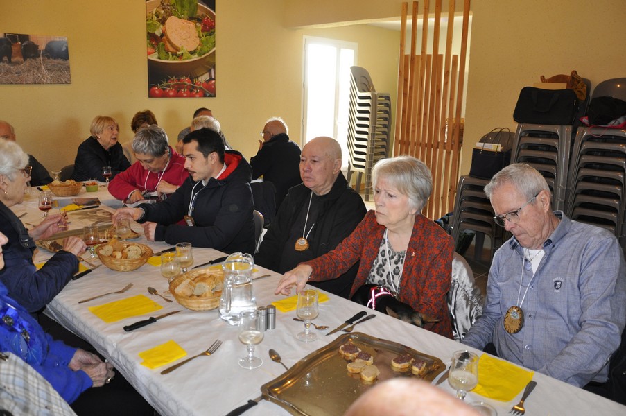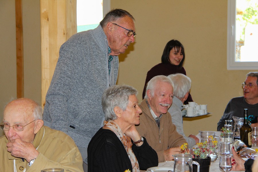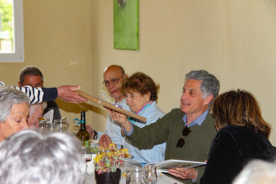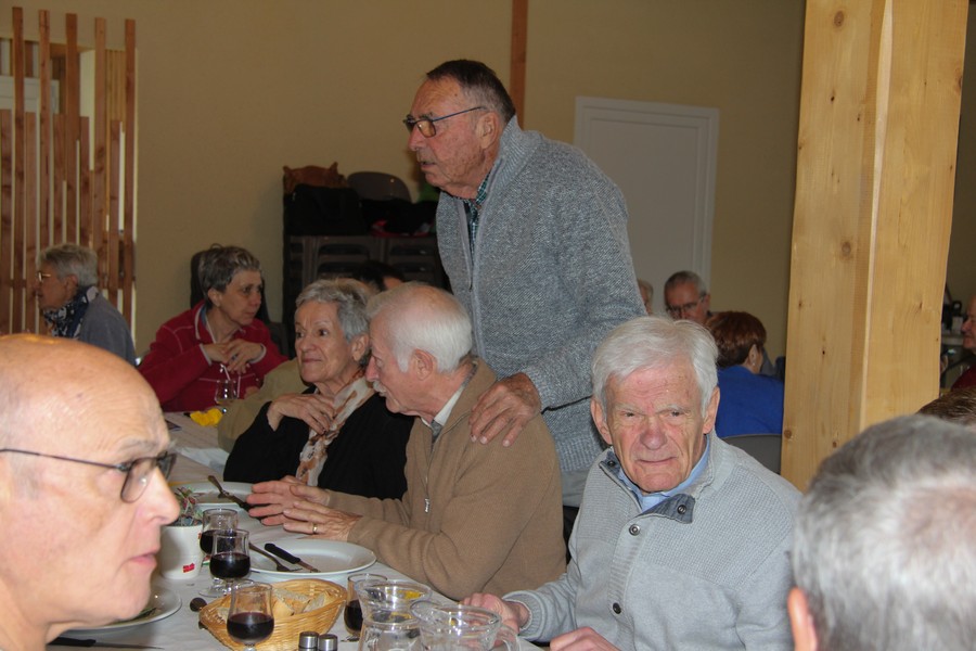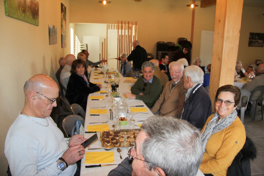 Présents au repas Daniel ALESSI, Claude et Danielle ARQUERO, André et Lucie BERNAT, René BOUSCATIER, Alain et Marie-Claude CHEVASSUT, Robert FICINI, Odile FICINI, Jean-Baptiste FICINI, Jean-Pierre et Claudia GUILABERT, Bernard et Martine HOUZÉ, Paulette JULIEN, Christian et Katherine MARTINEZ, Claude et Andrée METAIREAU, Gérard et Elisabeth PLAZA, Chantal RIZZO, Alain et Isabelle ROUSSEL, Jean-Pierre SAINT-MARC, Marc et Odile SELLIER, Jean-Marie WOLFF. |