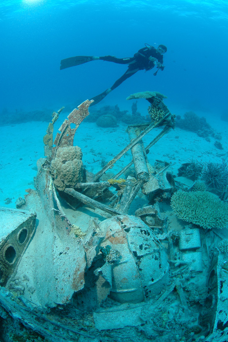 Pacifique-Sud (Archives USAF) ![]() ![]() 23 : Un des quatre moteurs ejectés de l'aile du B-17 de Koumac Nouvelle-Calédonie (Photo Luc Faucompré FMC) ![]() 24 : Le caisson repose à l'envers. Un des deux pneus du