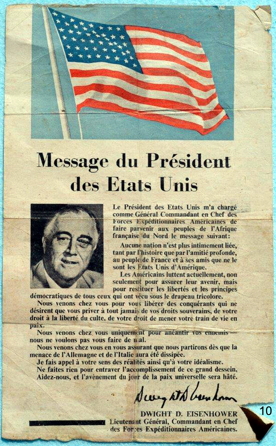TORCH A la fin du mois d’octobre 1942, un corps expéditionnaire américain, composé de 34500 hommes et 250 chars, embarqués à bord d’une centaine de navires, appareilla dans le plus grand secret de différents ports de la côte Est des Etats-Unis. Arrivée le 8 novembre à l’aube en vue des côtes marocaines, l’armada poursuivait un objectif majeur : permettre un débarquement de soldats par péniches, puis d’un matériel considérable et poursuivre la guerre à partir de l’Afrique du Nord, jusqu'à obtenir une capitulation sans condition des puissances de l’Axe. L’impressionnante Western Task Force se déploya de Port-Lyautey à Safi. L’opération Torch commença. Avec son artillerie de marine et son aviation embarquée elle attaqua principalement les batteries de Pont-Blondin et d’El Hank ainsi que la flotte française piégée dans le port de Casablanca. 10
