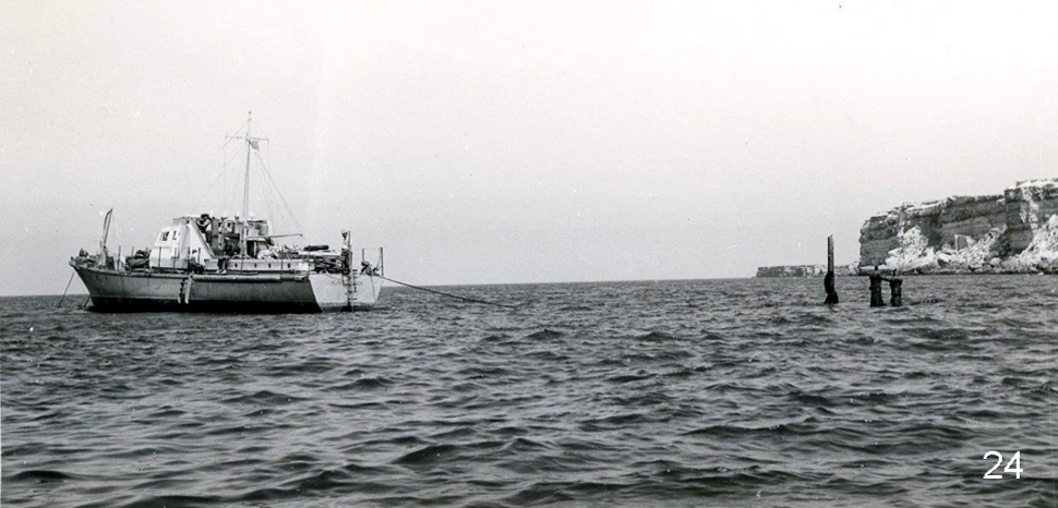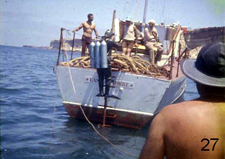 - Mise à l’eau de Lucien Mazella, un des deux plongeurs, par l’échelle de
