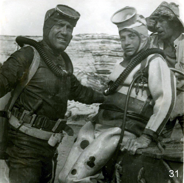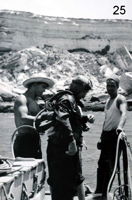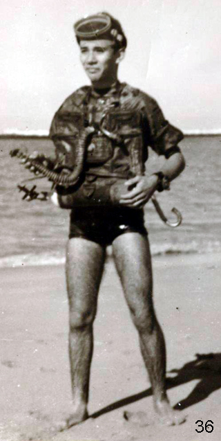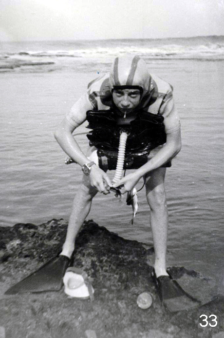 36 - En 1958, Jean-Pierre Guilabert se prépare à plonger dans la lagune de Sidi