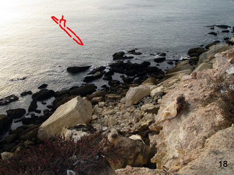 pente rocheuse, la base de l’étrave à trois mètres de profondeur, les deux