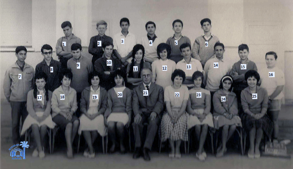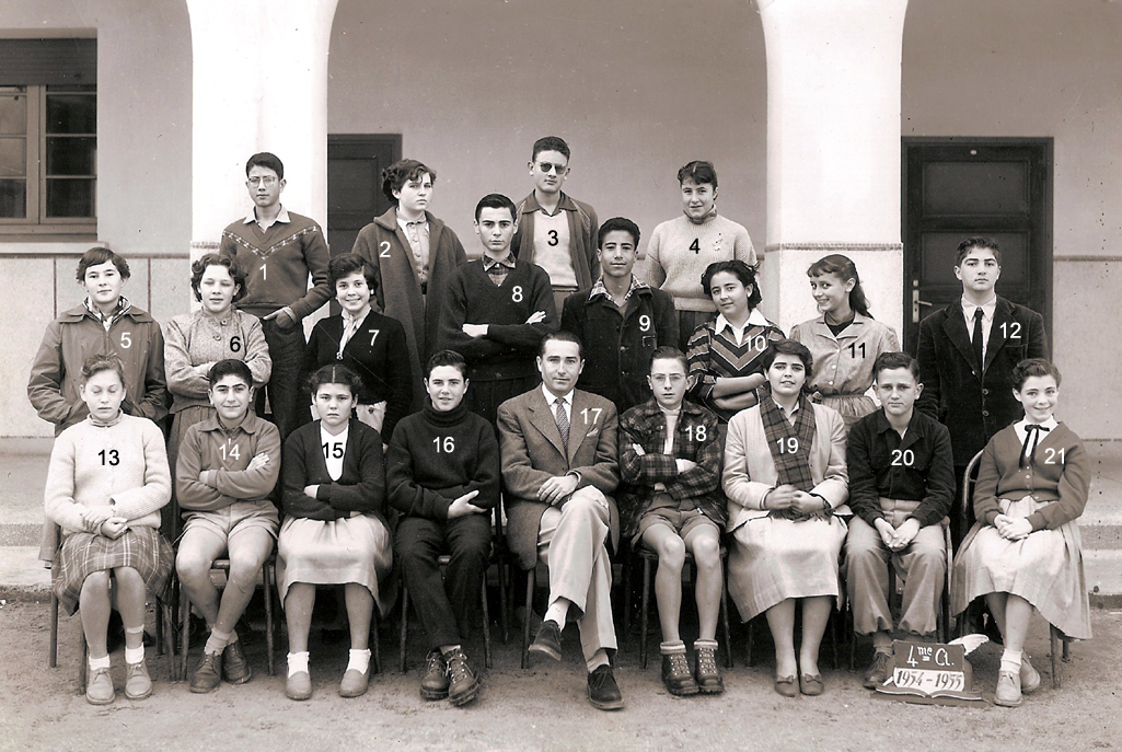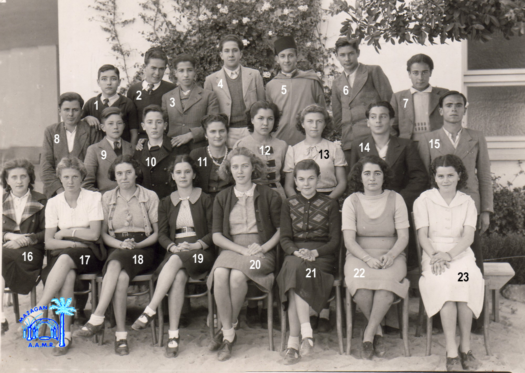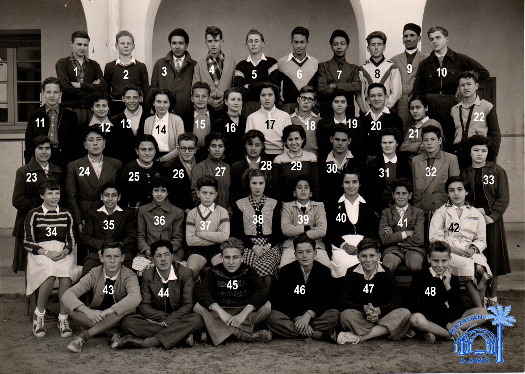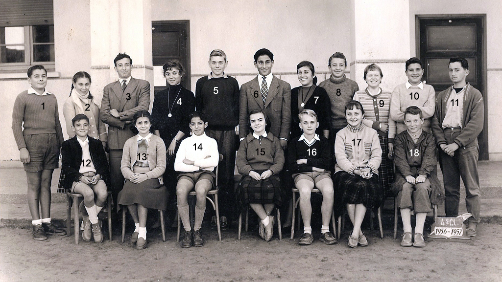 2 - ? 3 - ? 4 - AARON 5 - EL FASSI ? 6 - SEMAC ? 7 - ? 8 - BLANCHARD Jacques 9 - ? 10 - ? 11 - BRANDSTAETTER Yvette 12 - FABRE Micheline 13 - GUILLEMON Jeanine 14 - GIRAUDEL 15 - LEVY ? 16 - ? 17 - DELVOYE 18 - ? 19 - VELINGER 20 - BRUNO Suzanne 21 - NOGUÉ Jeanine 22 - AZIZA Reine 23 - BENSIMON Photo transmise par