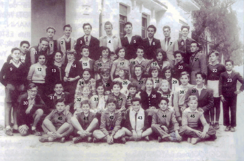 1 - RUBAT du MERAC Yves 2 - ? 3 - EL YACOUBI Hassan Soussane 4 - PACAUD Roger 5 - GUESSOUS Hamid 6 - BELKHADIR Mohamed 7 - CHABAULT René 8 - MAUCOURANT 9 - DI LORENZO Pierre 10 - Le cuistot 11 - BIZOT (pion) 12 - BENHAMOU Léonie (pionne) 13 - FILIPE Olivia 14 - ? Danièle 15 - ORMIERES Marcel 16 - ? Esther 17 - FABRE Josette 18 - ROLLAND Guy 19 - VALLAT Marie-Claude 20 - MELKA Sarah 21 - BENGHALEM Moussa (pion) 22 - HOCHE Gilbert 23 - ? 24 - RAMOS 25 - ? 26 - ARIF Babette 27 - ORMIERES Odette 28 - LABITTE Claude 29 - LABITTE Monique 30 - FORESTIER 31 - MOHAMMEDI Khaled 32 - ? 33 - ? 34 - ? 35 - RAMOS 36 - ? |