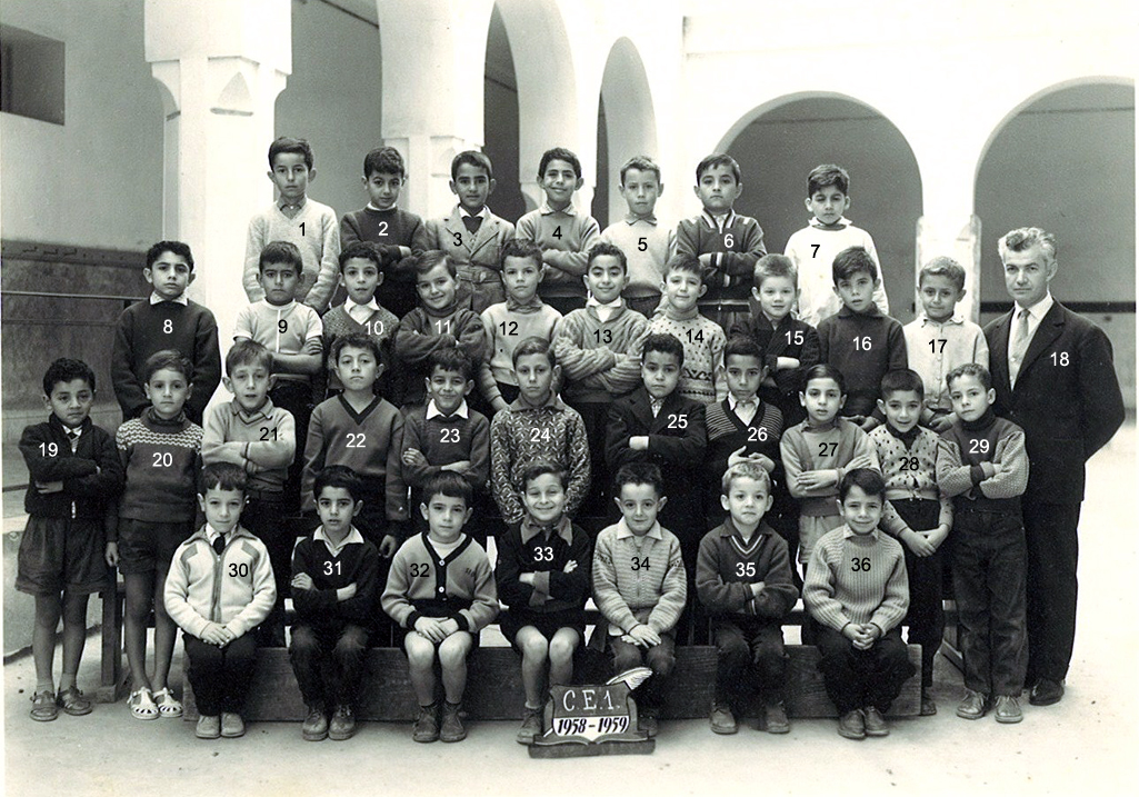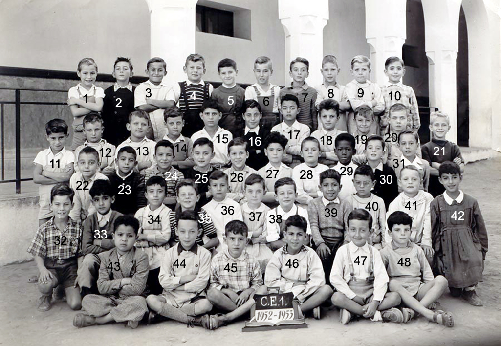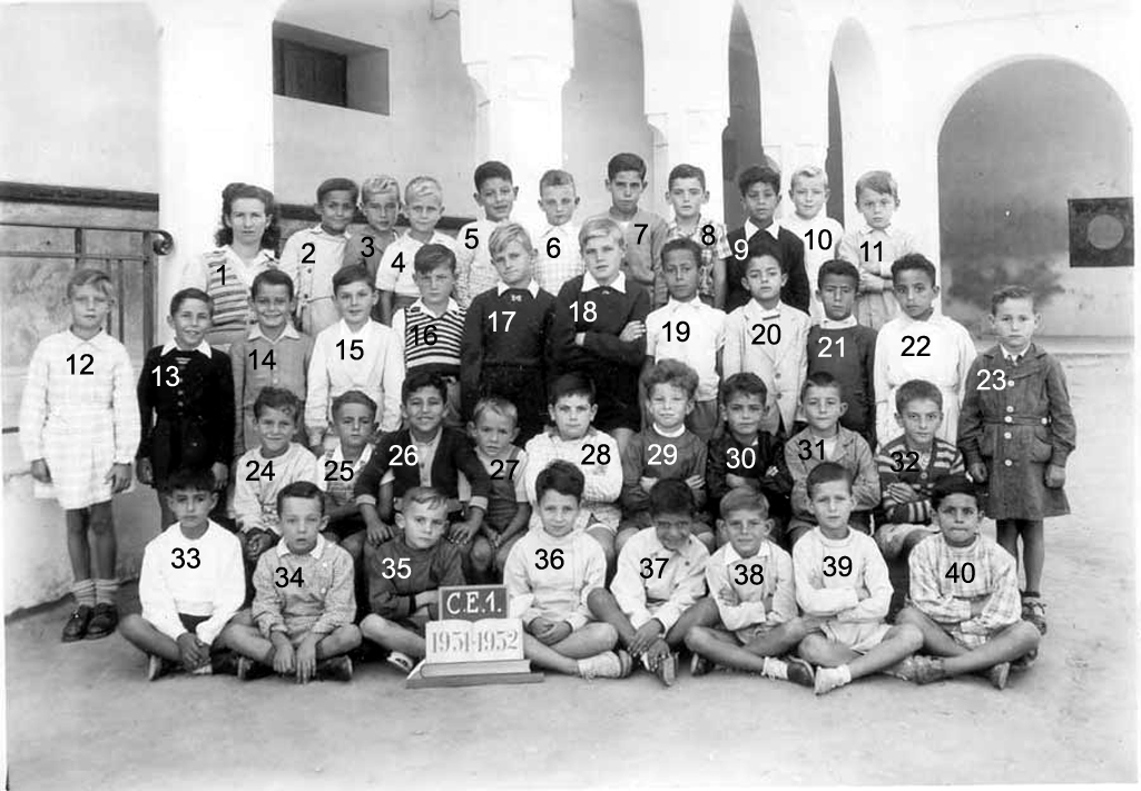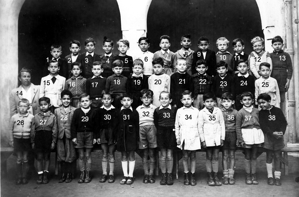 1 - FRANÇOIS ? 2 - ABICIDAN 5 - MULLER 6 - BENCHERQUI 9 - BENABOU 10 - OLMIERES Jacques 11 - BENATAR Albert 12 - ASERNAL Clément 13 - BOSQUET 14 - Mme SELLIER 16 - AÏT-KACI Rachid 17 - GUILBERT ? 18 - BOSQUET 19 - SORIA Philippe 20 - LASSALLE 22 - NAHON Ménaim 24 - CADILLON 25 - BENCHETRIT 26 - MICHON 27 - TIBARI 29 - BAYARD 30 - FEUCHER ? 31 - MELLUL Salomon 32 - ALMODOVAR Serge 33 - VACHON Alain 34 - TALON 35 - DIAZ André 36 - MAÏNETTI Bernard 37 - PIRAS Aimé 38 - LAPONTERIQUE J.-Claude (Photo transmise par