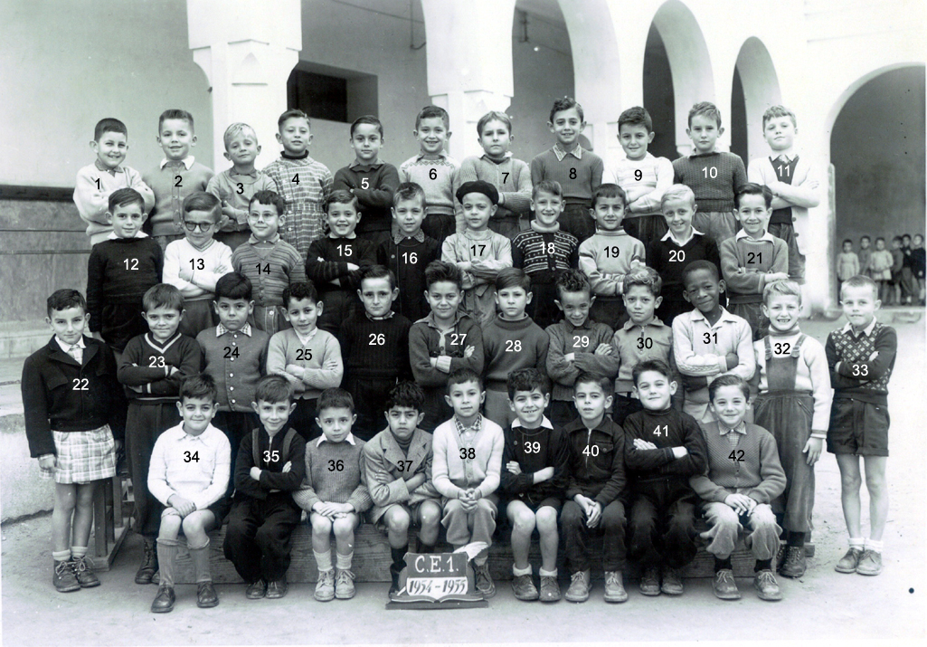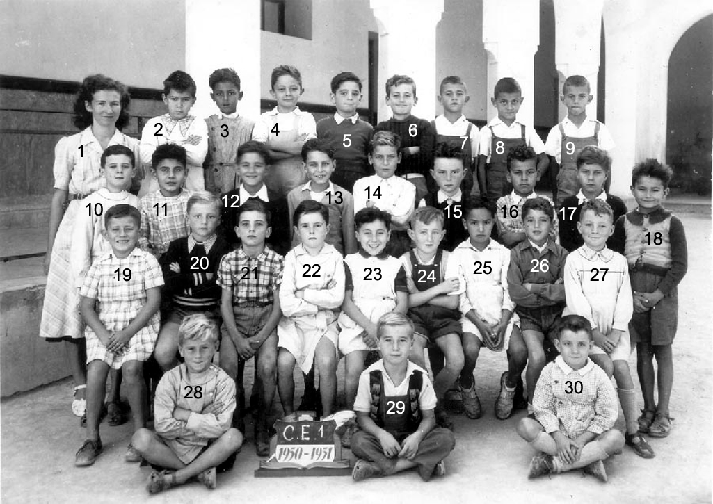 1 - Mme GIRAUDEL Janine 2 - RIZZO Robert 3 - ? 4 - BOURRET Pierre (Cristin) 5 - SALINAS François 6 - GUILBERT 7 - VIDAL 8 - VIDAL 9 - VIDAL 10 - LOPEZ 11 - PILLET 12 - ? 13 - ABICIDAN 14 - ? 15 - ? 16 - ? 17 - BOSQUET 18 - ? 19 - GONZALEZ Jacques 20 - ? 21 - ? 22 - ARQUERO Claude 23 - ? 24 - ? 25 - ? 26 - BENSIMON Nessim 27 - HOUZÉ Jean-Paul 28 - ? 29 - PROT Françis 30 - ? (Photo transmise